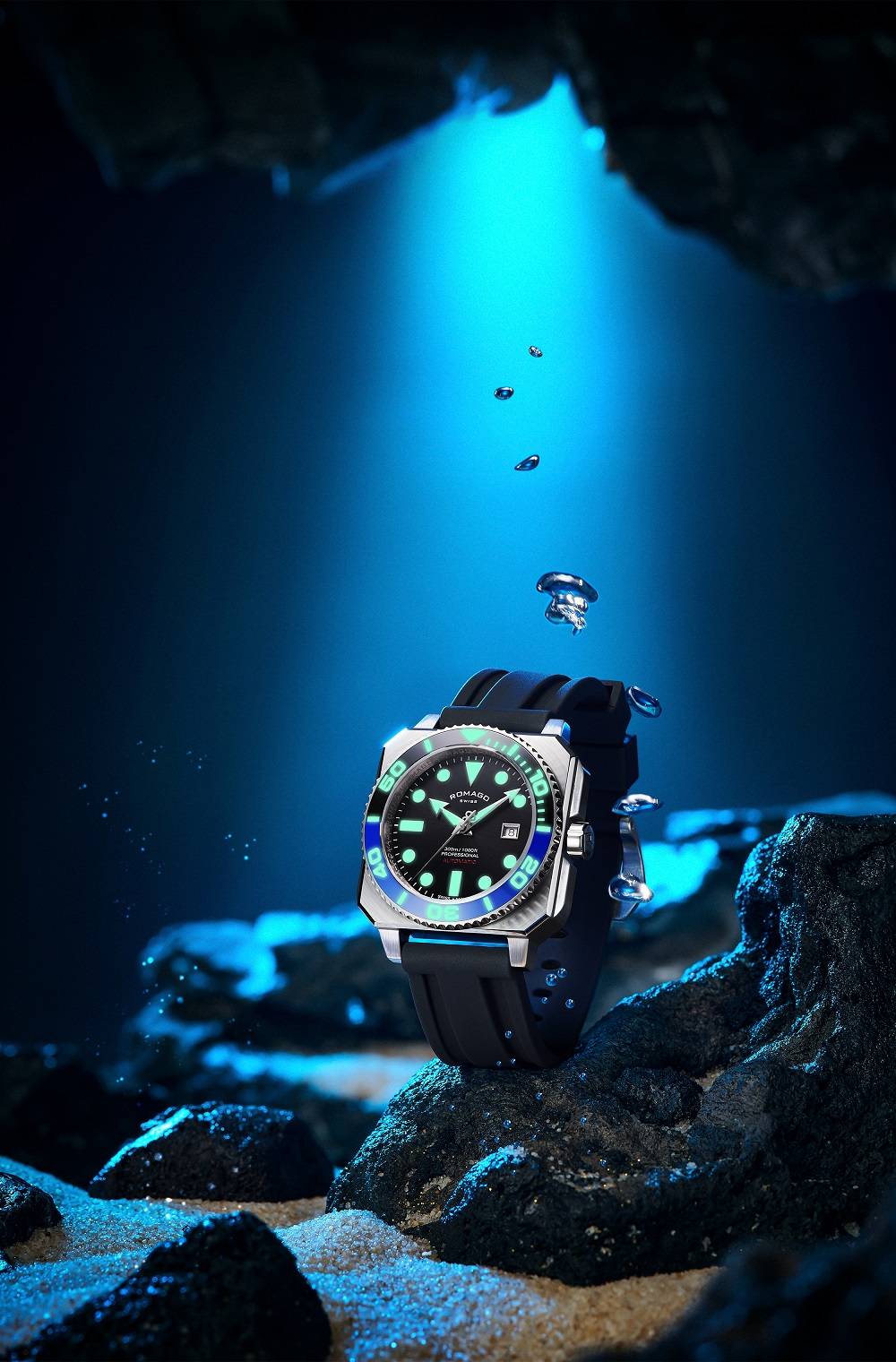 规格参数 机芯:瑞士自动上链机械机芯 表壳:316L精钢,直径46毫米 表面:蓝宝石水晶玻璃 表带:24毫米宽度,橡胶表带,附送原装精钢表带 防水性能:可达5巴(50米) 动力储存:38小时